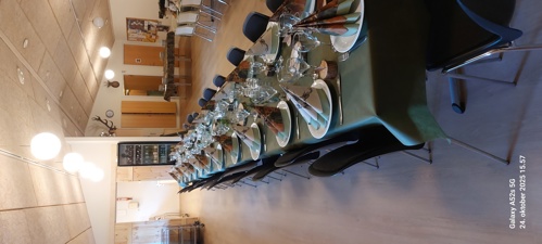 Lokalet har plads til op til 70 gæster, og de fleksible borde- og stoleopstillinger gør det nemt at tilpasse rummet til både små og store selskaber.